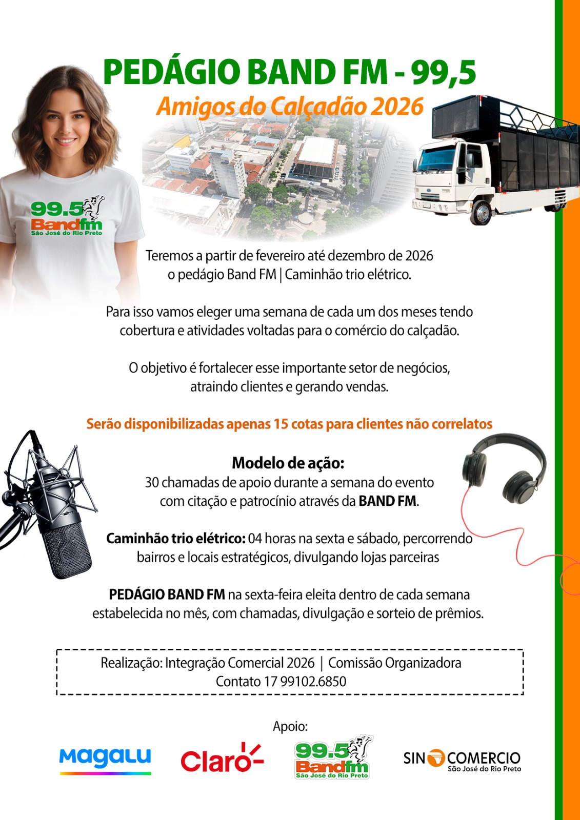 De fevereiro a dezembro, uma semana por mês será dedicada ao fortalecimento do comércio do calçadão, com cobertura especial, caminhão trio elétrico e ações promocionais.
